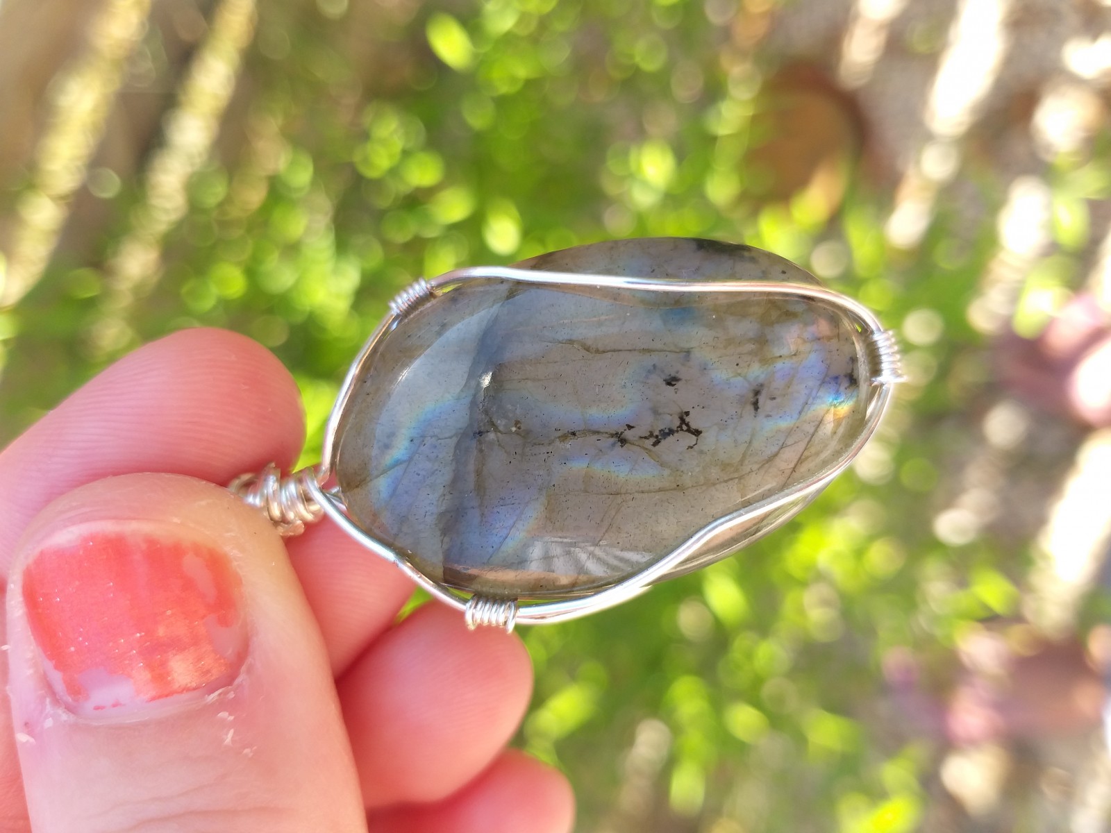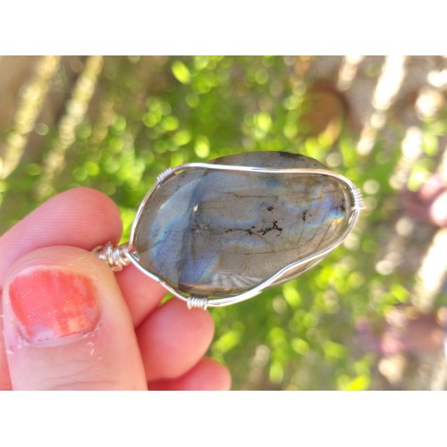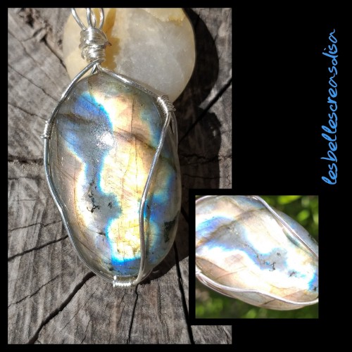 Pendentif en wire wrapping d'un cabochon de labradorite (origine inde).