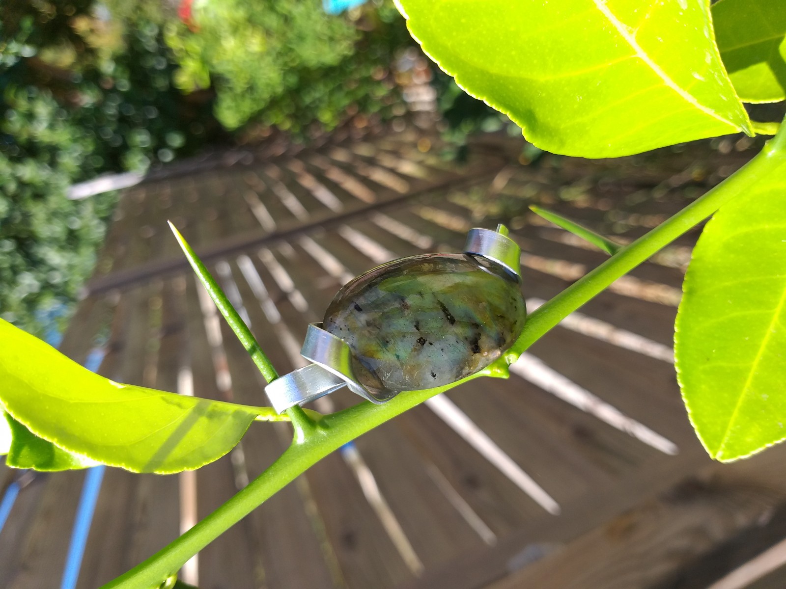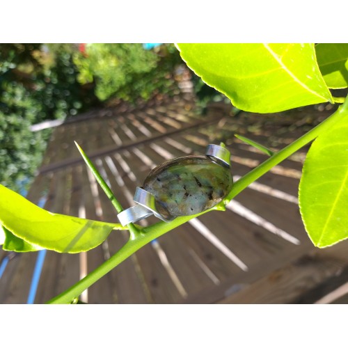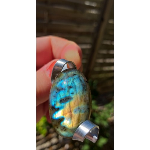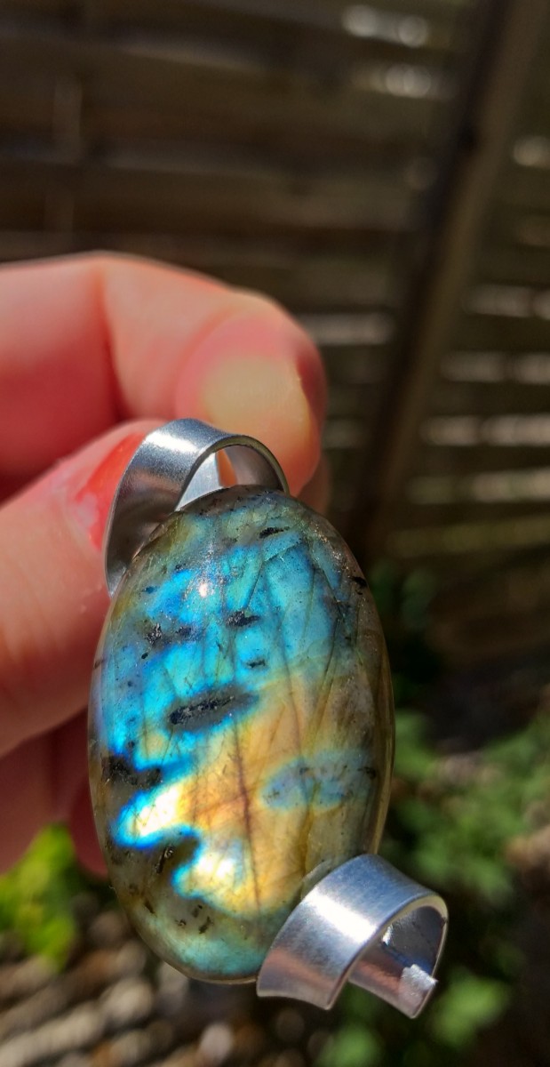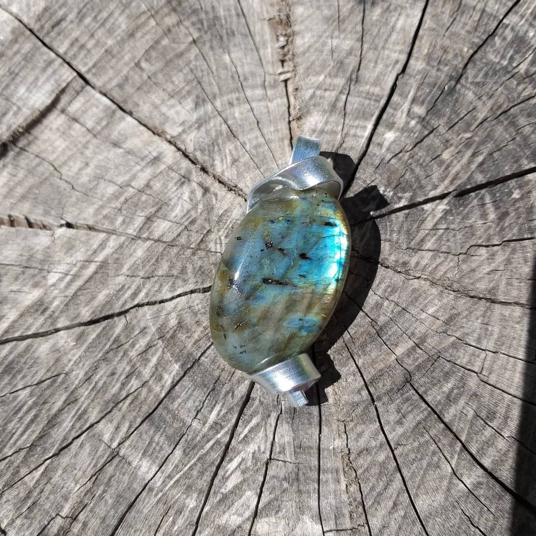 Pendentif labradorite, montage du pendentif avec du fil d'aluminium.