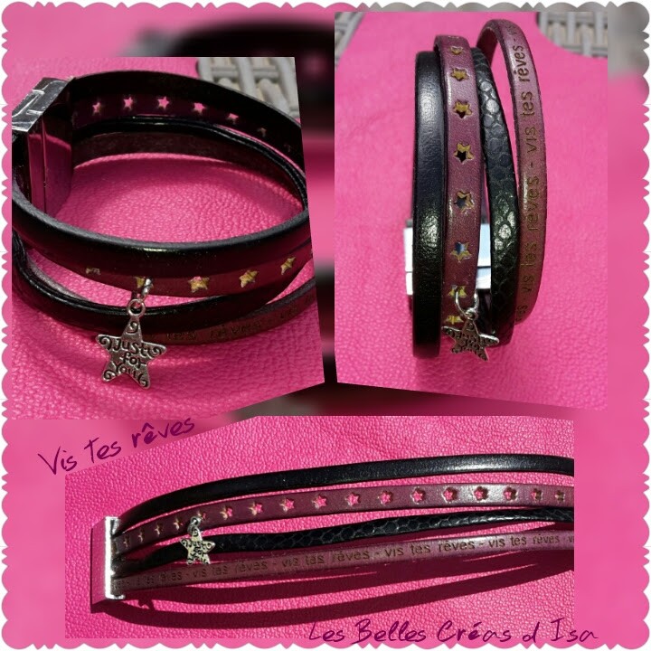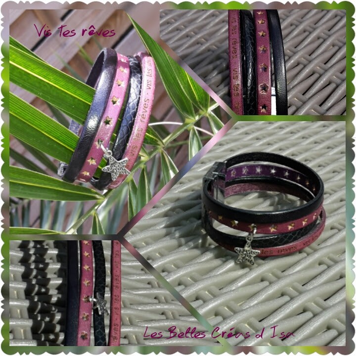 "Vis Tes Rêves" est un joli bracelet en cuir, fait main, qui accompagnera vos tenues printanières, vos tenues d'été, ou même égaiera celles d'hiver.