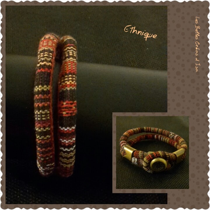 Invitation au voyage avec ce bracelet ethnique en tissus coloré ton marron rouge motif rayé