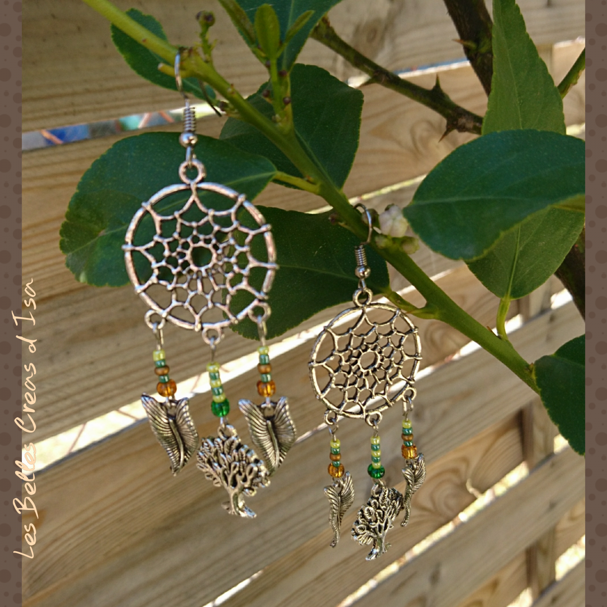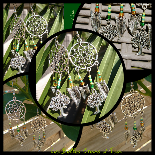 Boucles d oreilles modèle Attrape rêve thème nature,