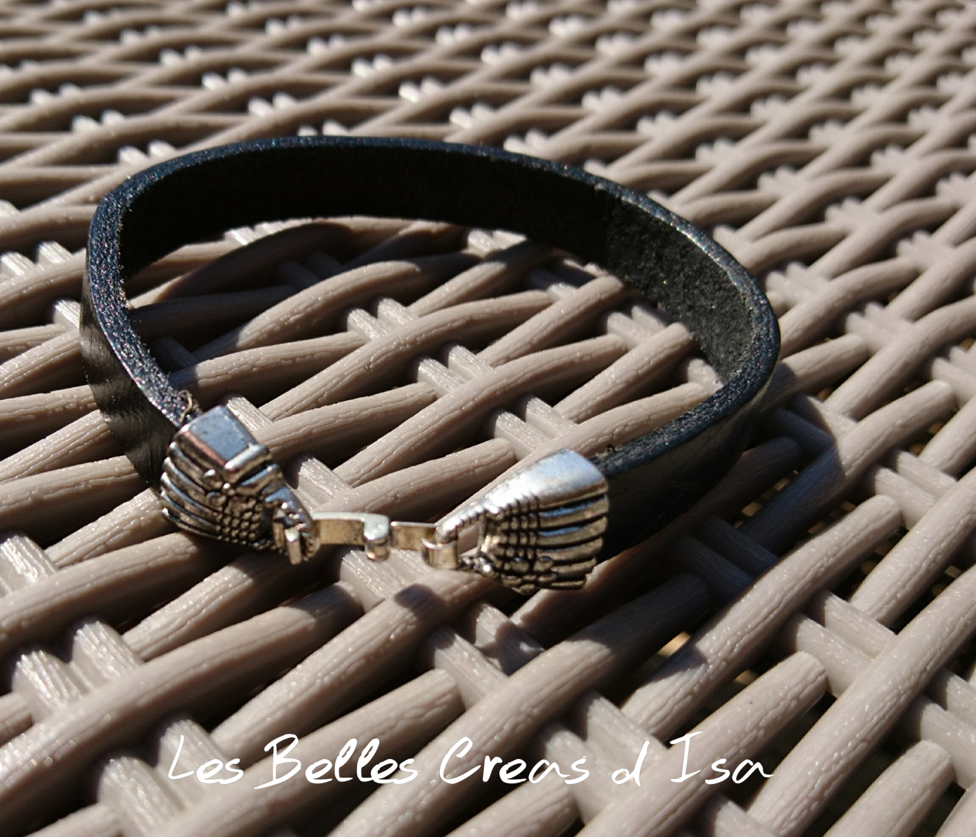 Bracelet cuir noir fermoir clip