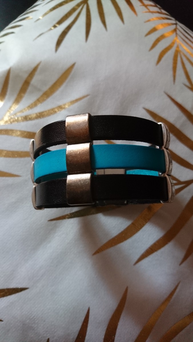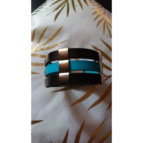 Bracelet cuir noir et turquoise , passant métal