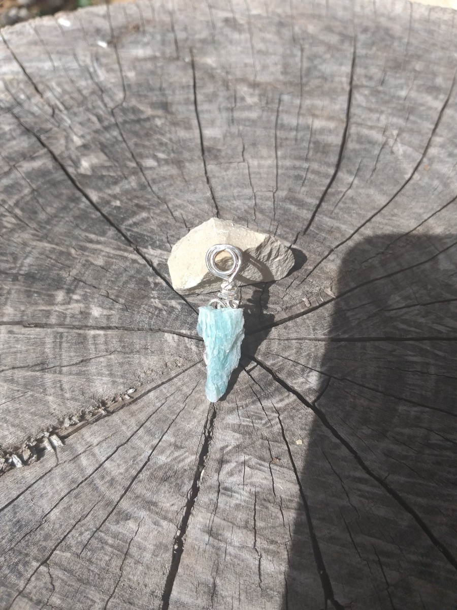 Pointe d' amazonite brute, taillée à la main.