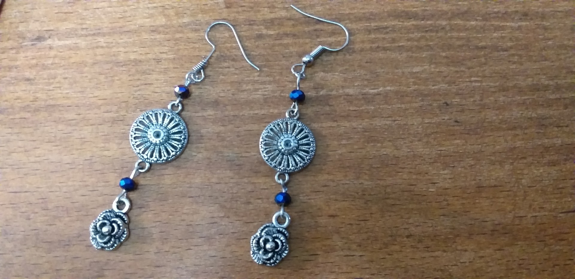 Boucles d'oreilles pendantes bleues - fleur