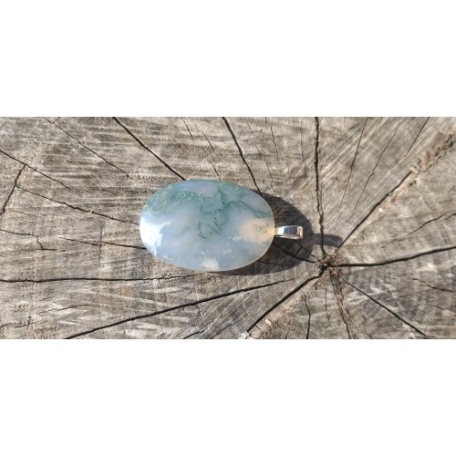 Pendentif Agate Mousse - cabochon ovale 32/22/5mm hors belière -