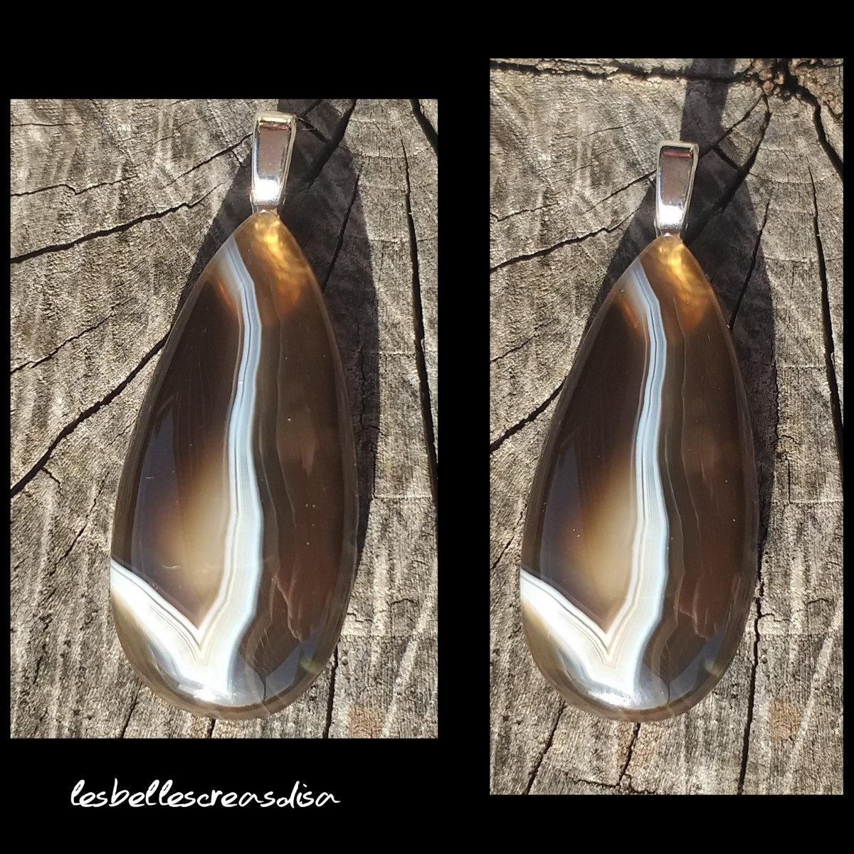 Cabochon en forme de goutte d 'agate rubanée marron