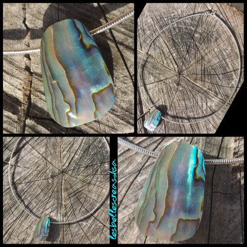 Collier ras de cou - métal et pendentif coquillage paua , abalone