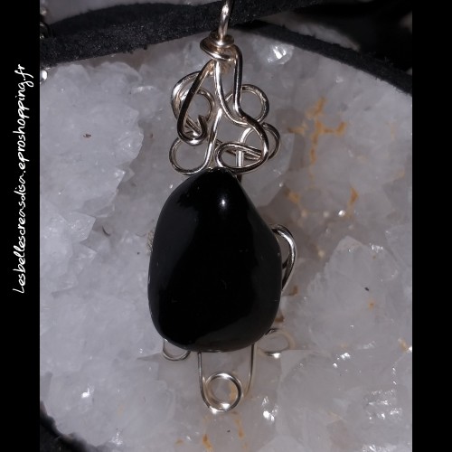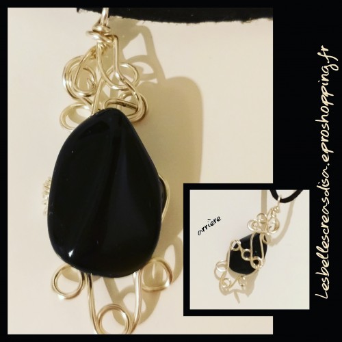 Pendentif composé d une pierre d obsidienne noire sur montage en fil de cuivre. Pendentif réalisé à la main, en un exemplaire unique.