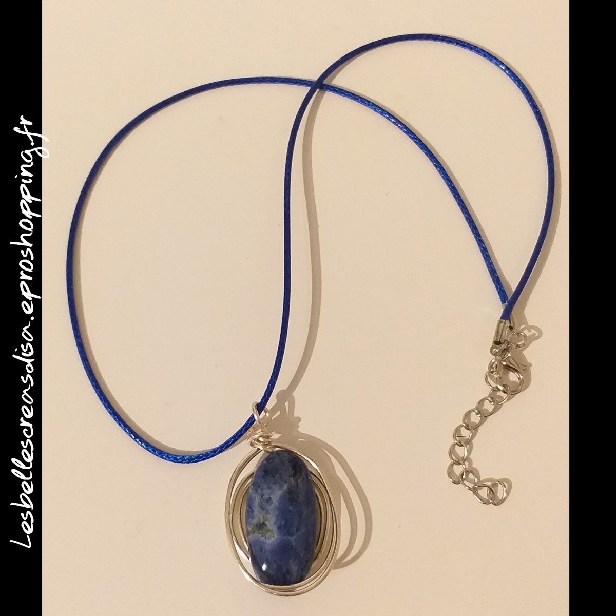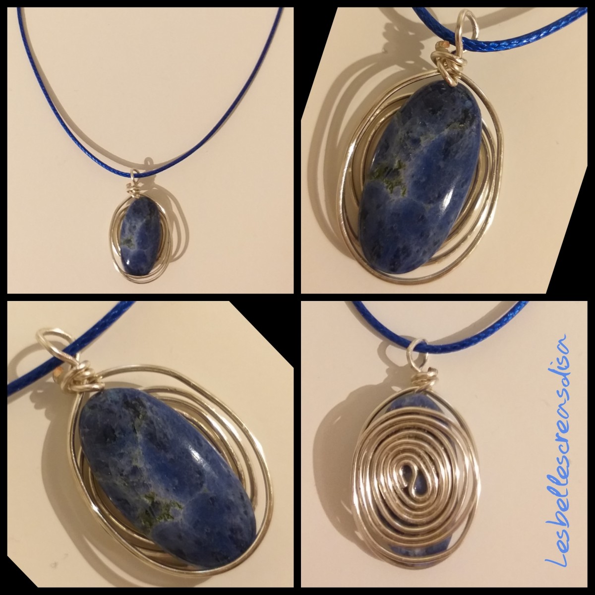 Ce collier est composé d un cabochon en sodalite, pierre naturelle, monté en wire wrapping, ce pendentif a été réalisé à la main.