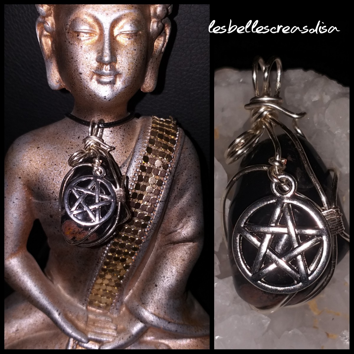 Un pendentif pentacle a été ajouté à la création afin de lui apporter un aspect original et unique.