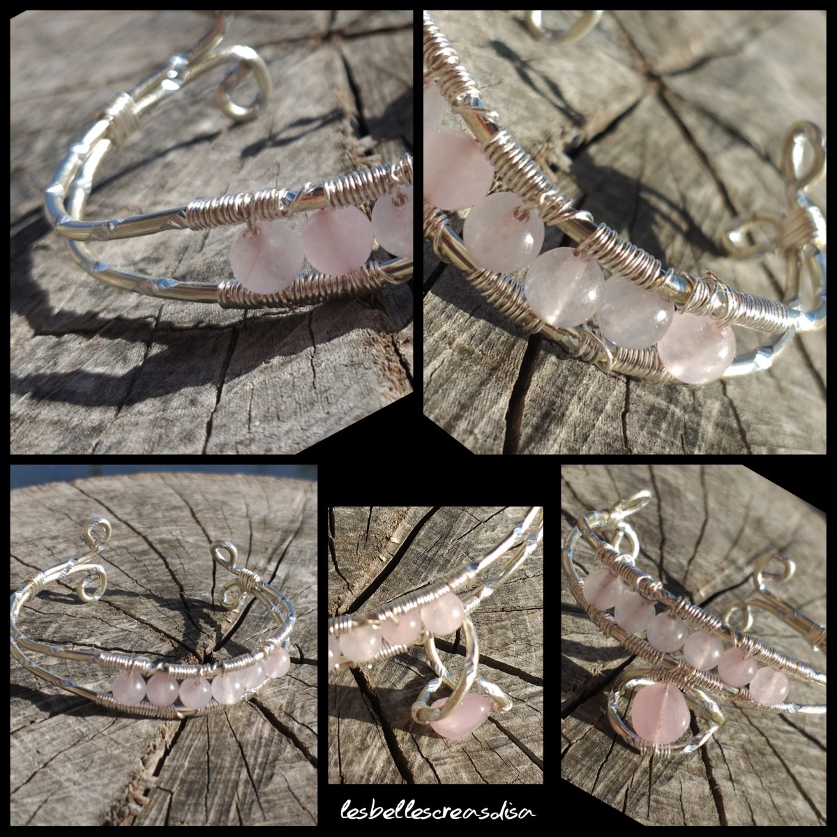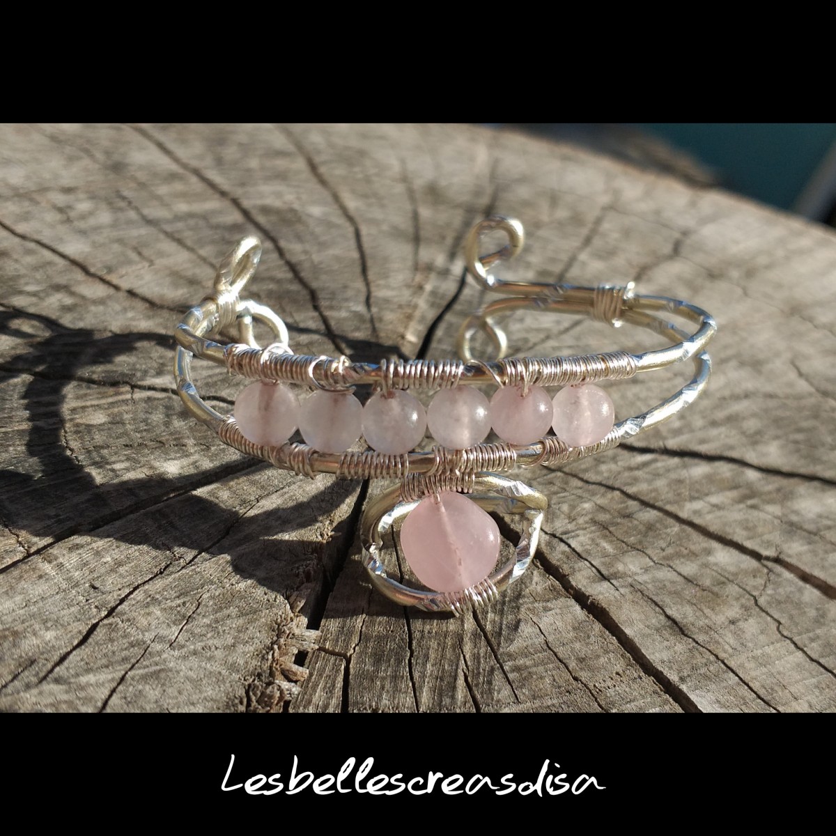 Bracelet quartz rose et fil d aluminium entièrement réalisé à la main
