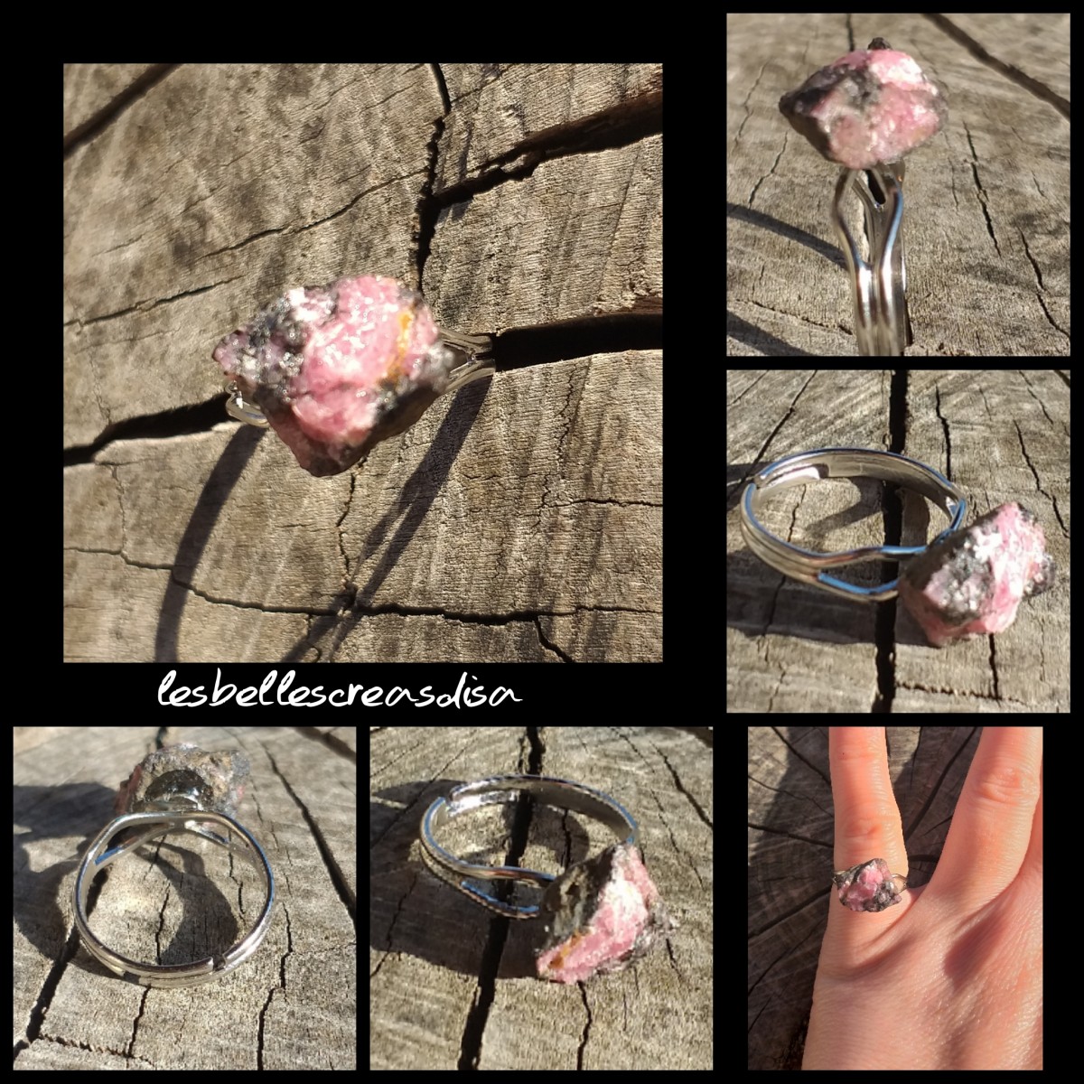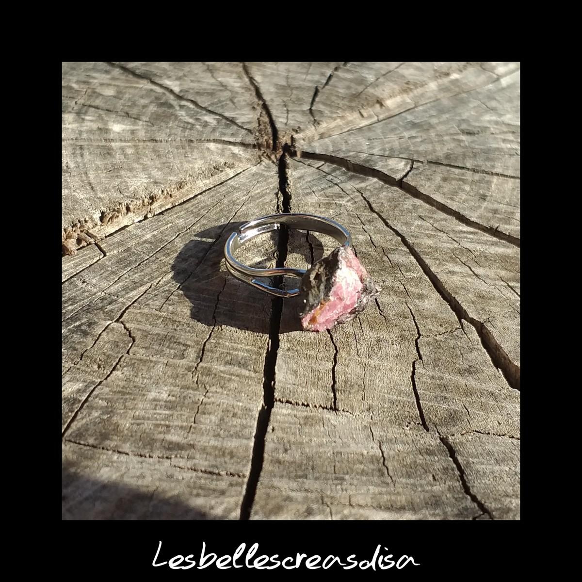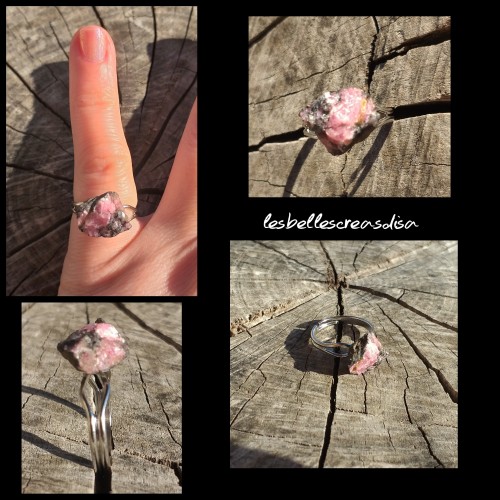 Bague ajustable en métal de couleur argenté et sa pierre en Rhodonite brute de Madagascar