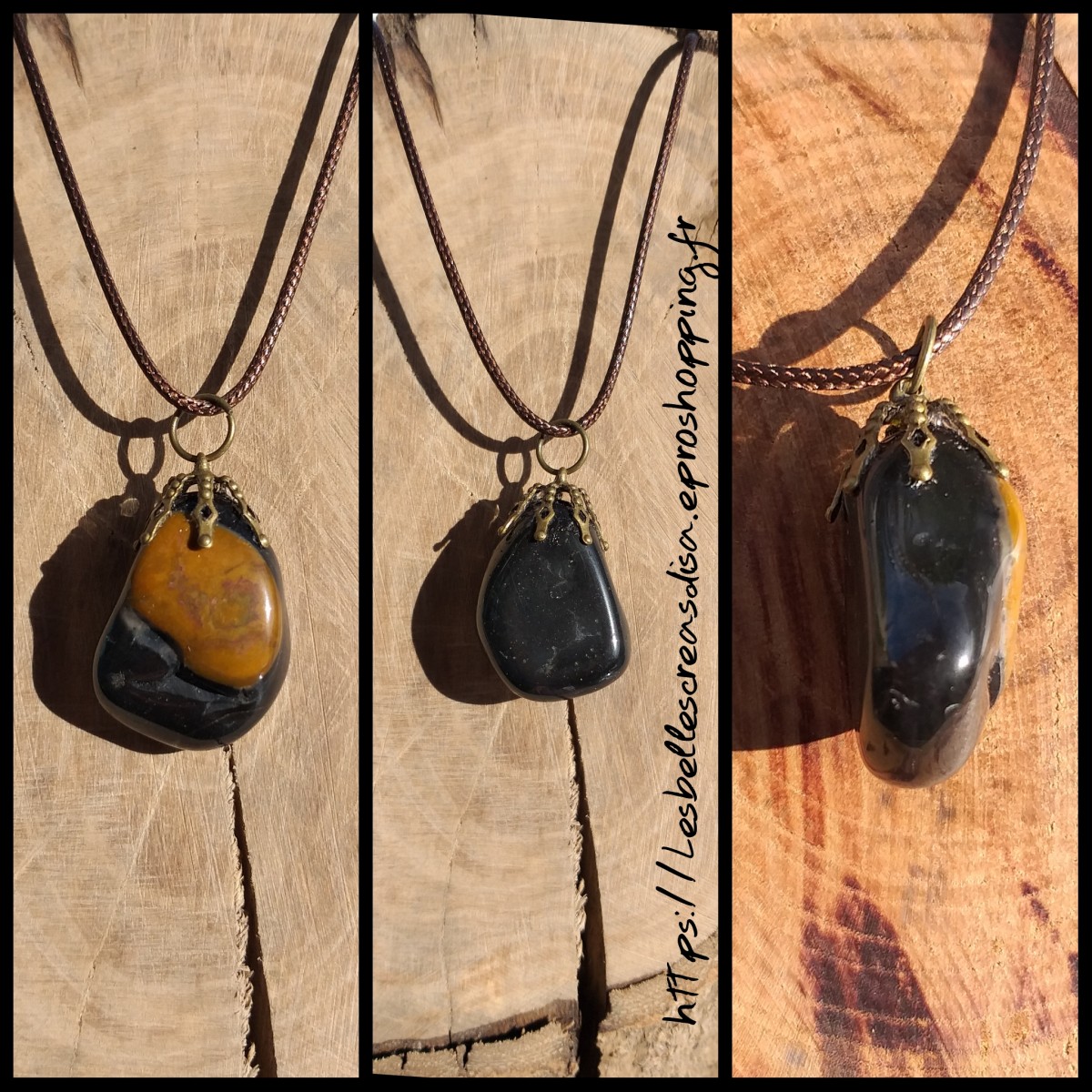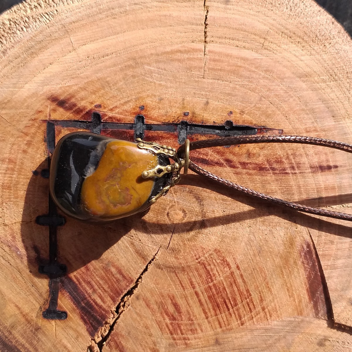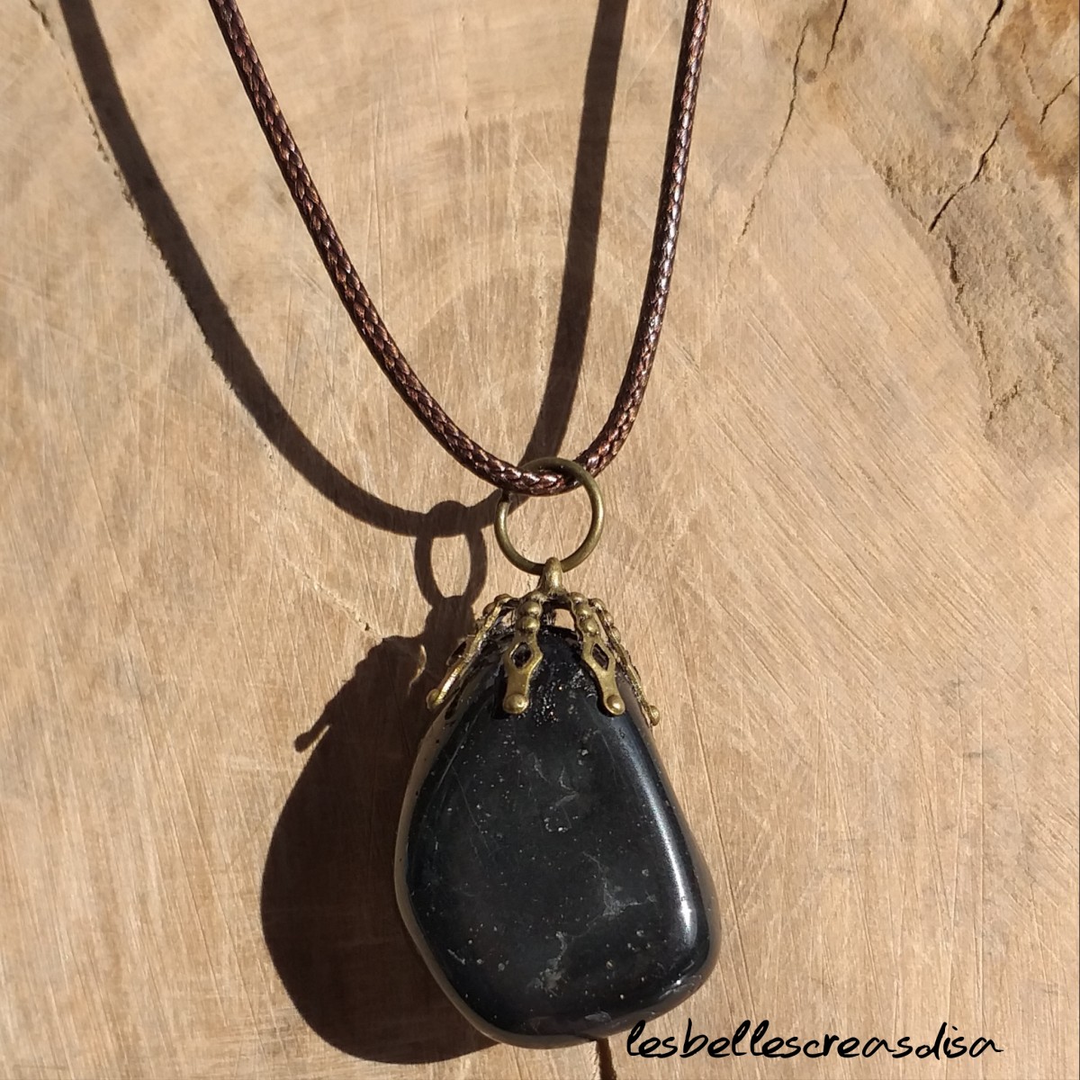 Pendentif en pierre naturelle , onyx, pierre roulée , bélière collée de couleur bronze.