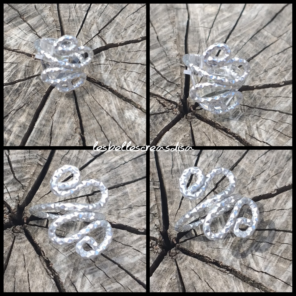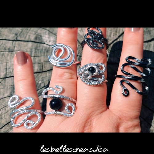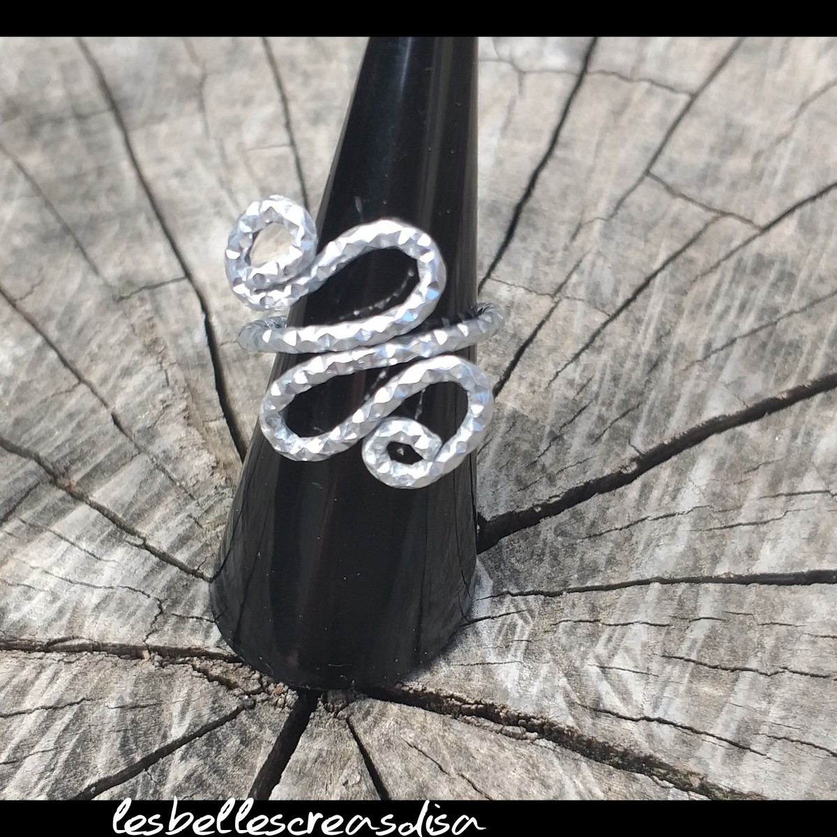 #Baguefemme #aluminiumgrisargentciselé- #formeoriginaleserpent - #motiffantaisie- création unique et fait main- idée cadeau
