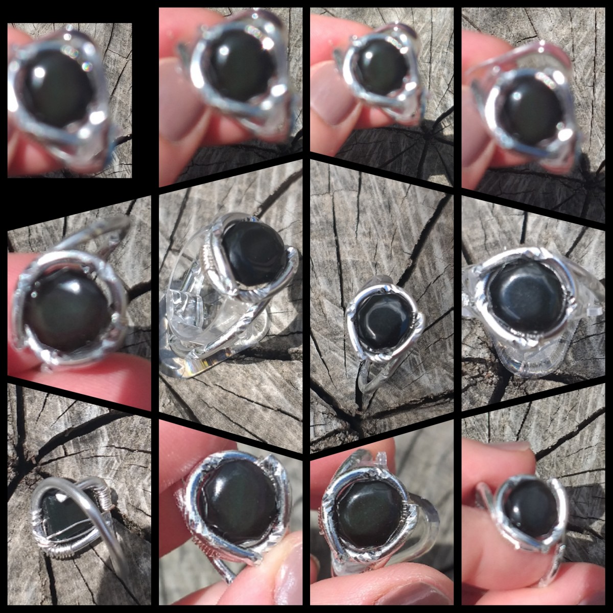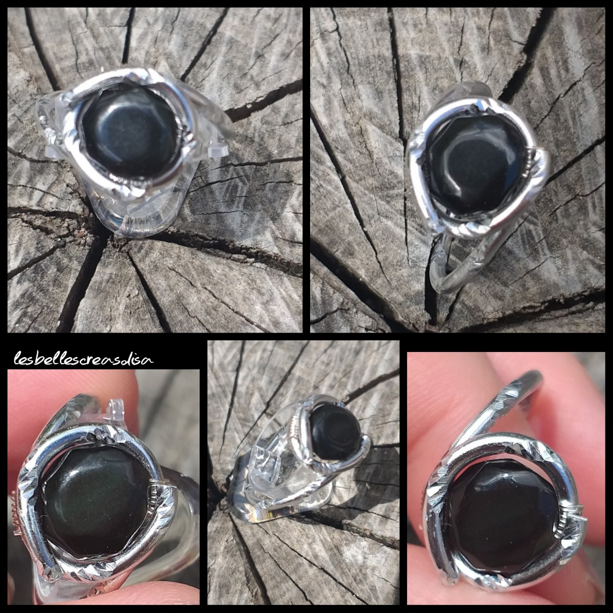 #Bagueobsidienneoeilceleste- #baguefemmepierrenoire - #hypnotique #obsidienneoeilceleste - bague unique et fait main fil d aluminium gris argent ciselé et perle obsidienne oeil celeste- bijoux femme pierre de protection- #talisman