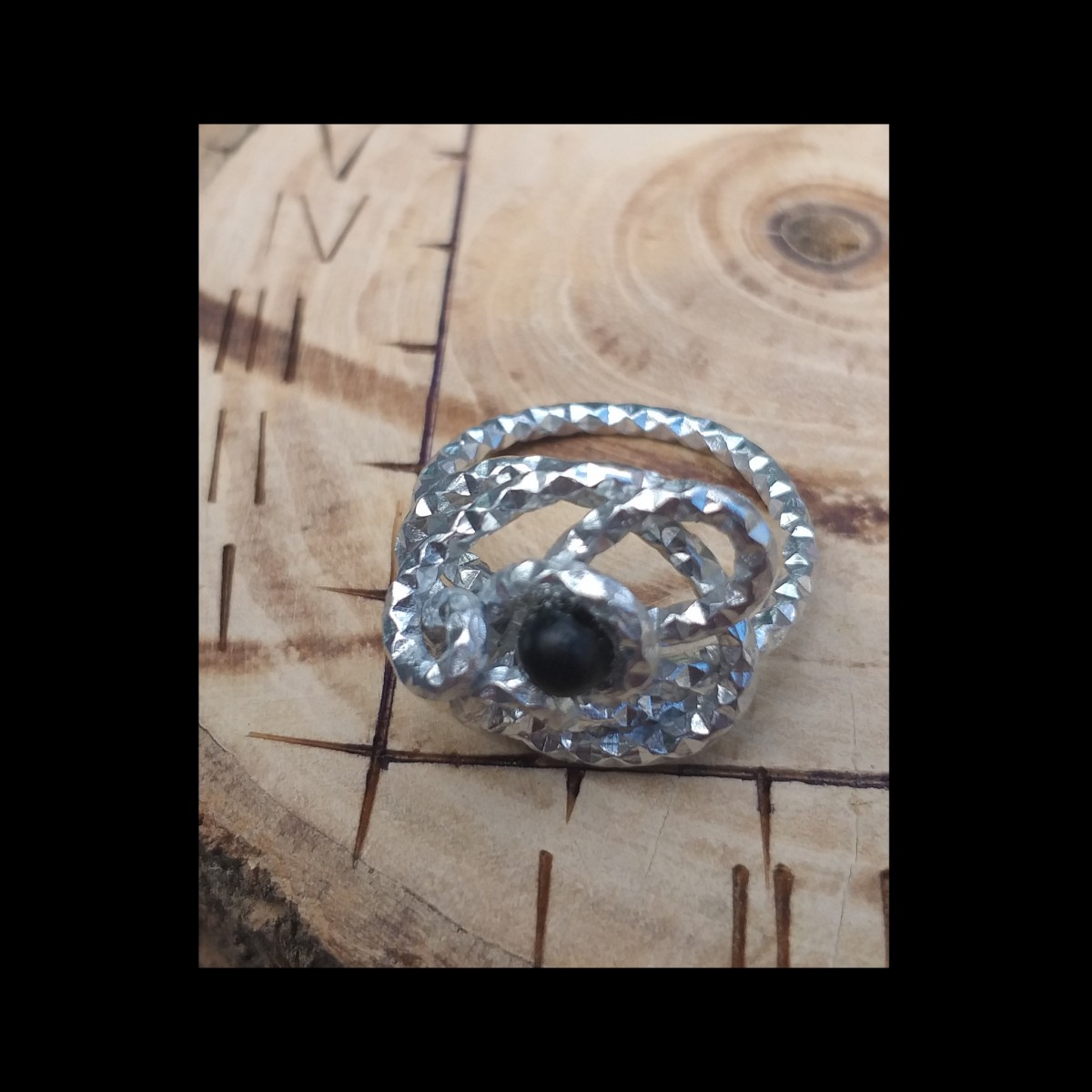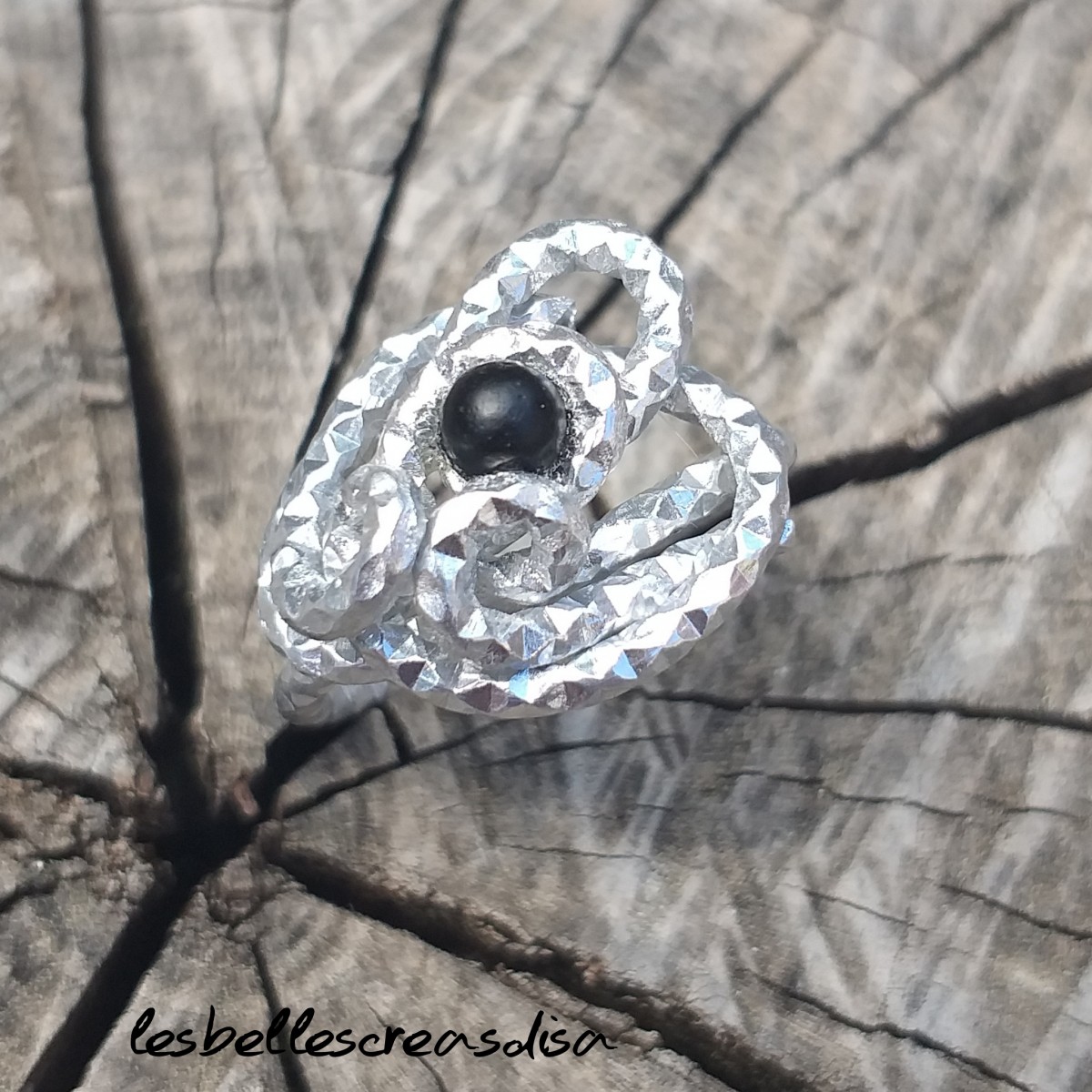 Bague onyx wire wrapping fil d aluminium gris argent ciselé perle pierre naturelle noire - bague femme - tourbillon- talisman de protection- bague #fashion- bijoux créateur fait main exemplaire unique- bague perle noire