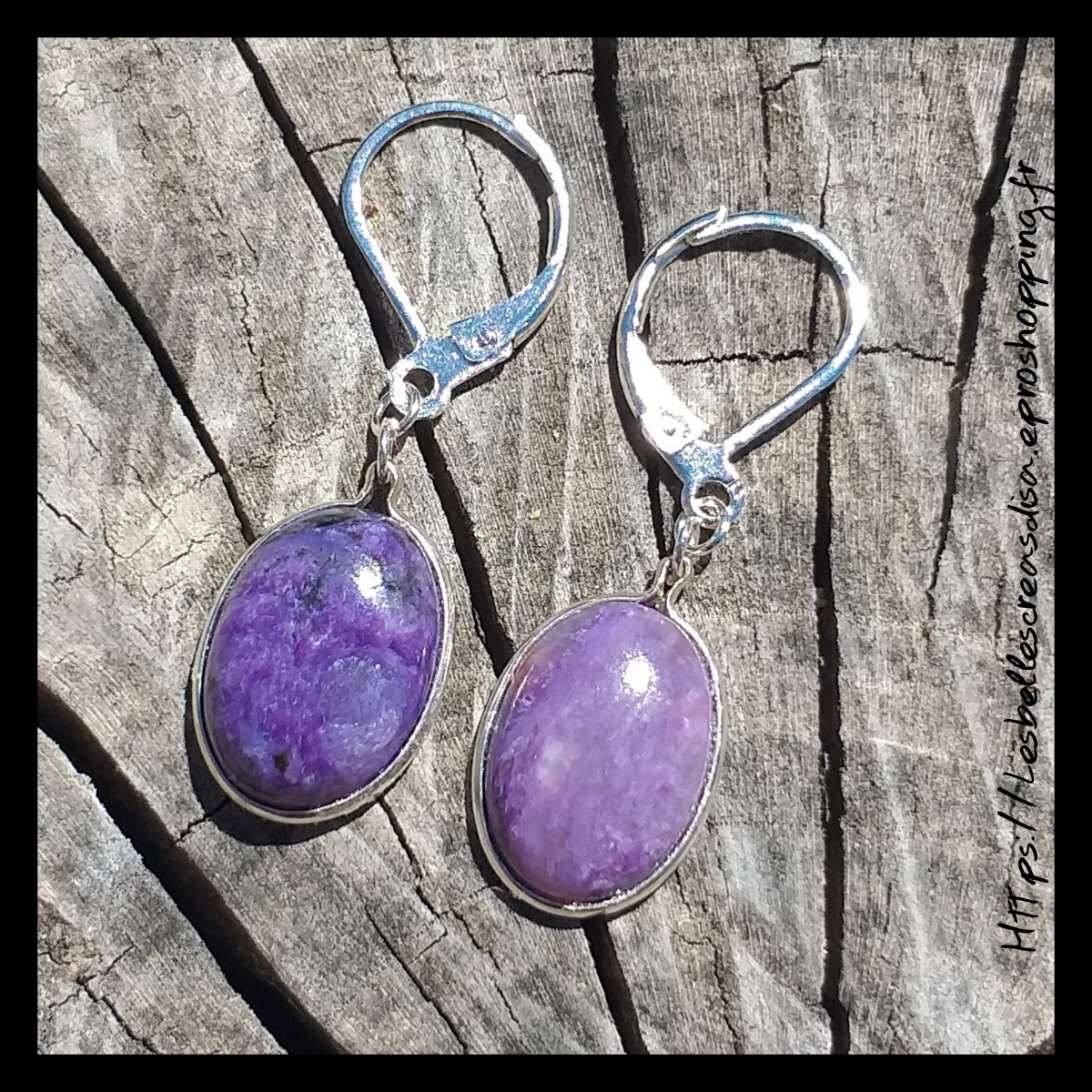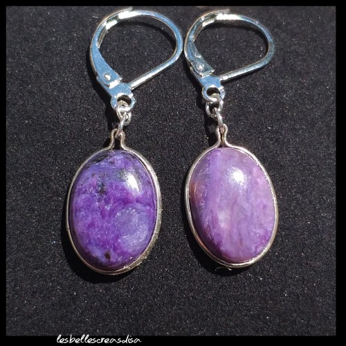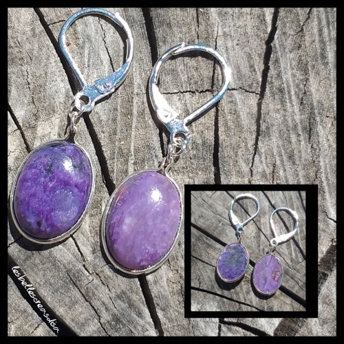 Boucles d'oreilles pendantes en Charoite - Pièce unique