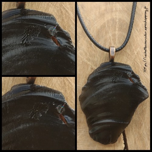 Obsidienne noire: pierre d ancrage et de protection, dénoue les blocages psychiques, pierre de connection à l inconscient elle donne accès à notre part d ombre mais également à nos richesses intérieures, fait rejaillir nos souvenirs passés, nos émotions qui altèrent notre comportement aujourd hui pour mieux nous en libérer. Pierre de protection contre la magie, c est une pierre qui demande du courage pour être portée au quotidien, cela peut etre difficile est faire mal il faut être prêt psychologiquement pour entamer ce travail sur soi.
