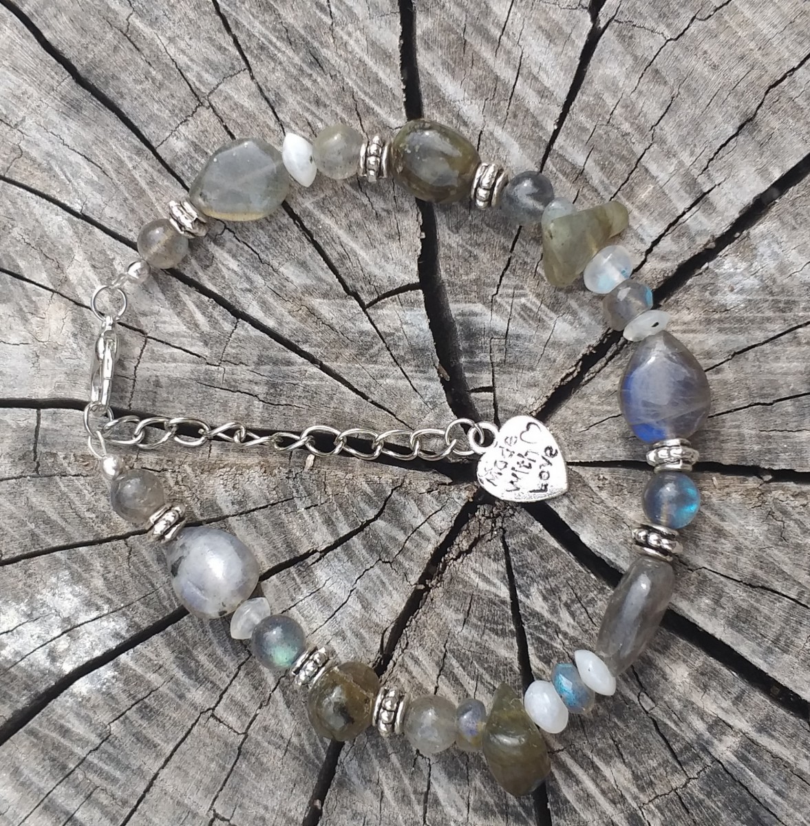 Perles en labradorite de différentes formes: goutte , rondes et chips