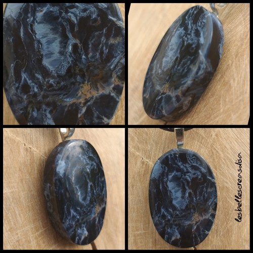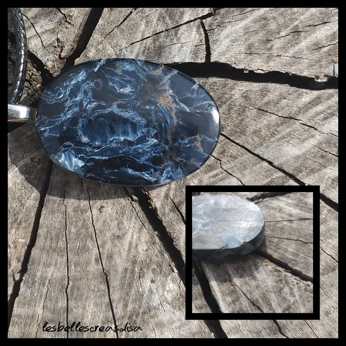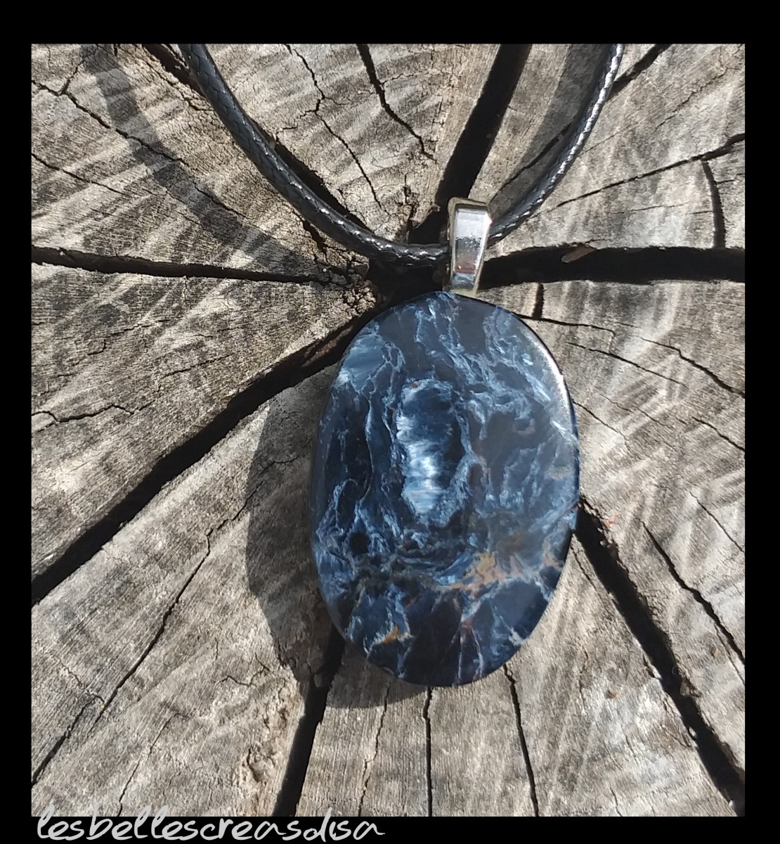 Le pendentif se compose d'un cabochon de forme ovale en pierre naturelle de Piétersite origine Namibie
