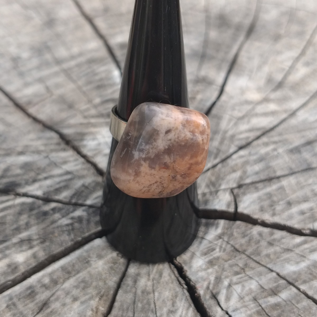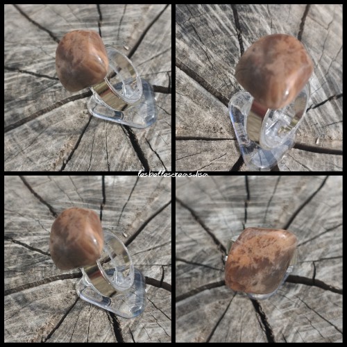 Pierre roulée naturelle montée sur support de bague réglable acier inoxydable