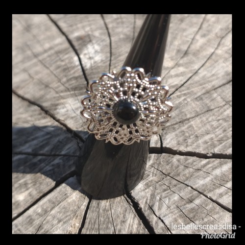 #pierrenaturelleOnyx #couleurgrisargent #originale- #baguefemme - #perlenoire - #bijouxcréateurfaitm