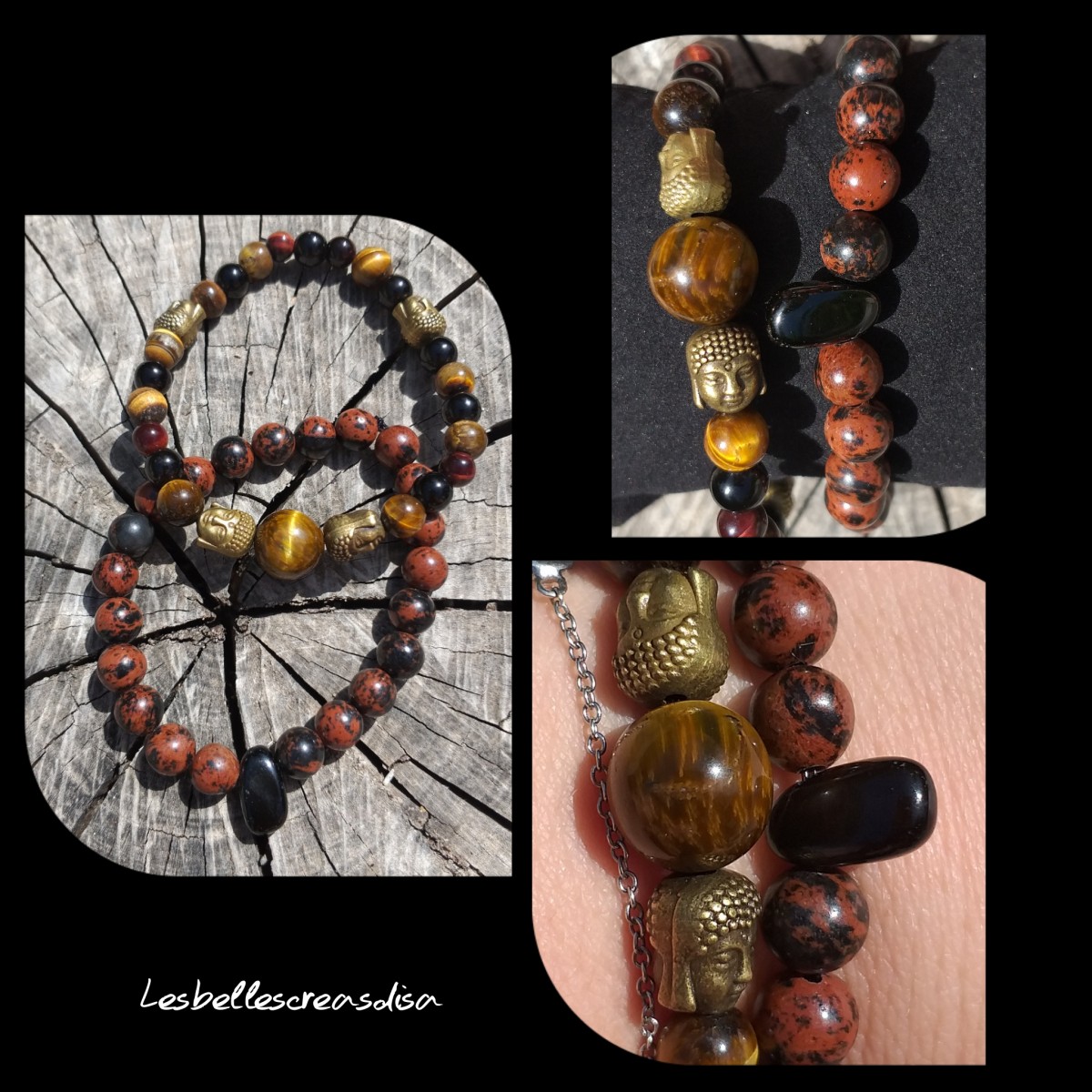 Certaines perles d oeil de tigre ont été réalisée à la main, elle sont très peu polies afin de garder l aspect naturel de la pierre
