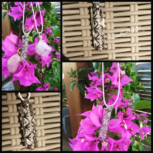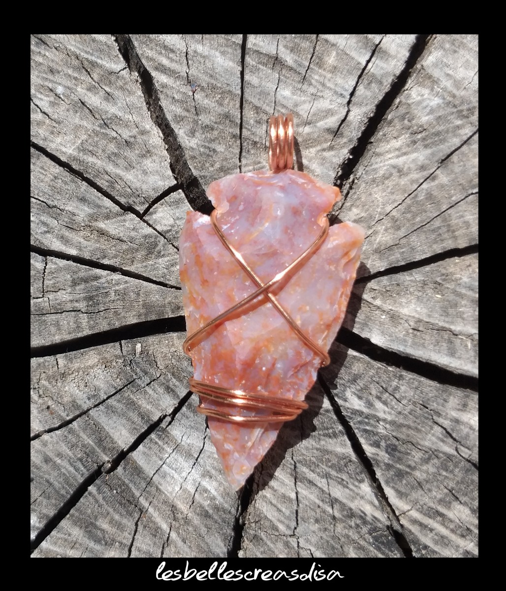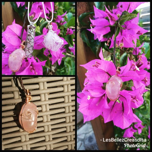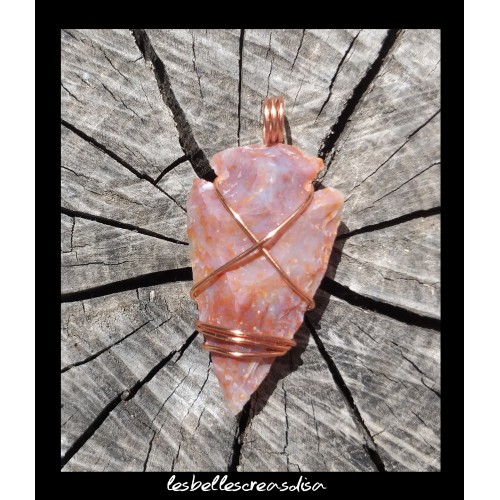 - D'une bélière en cuivre, réalisée à la main, à partir de fil de cuivre spécial bijoux, enroulé avec la technique du wire wrapping.