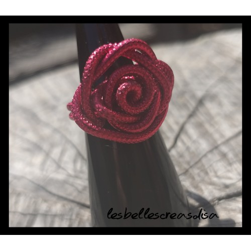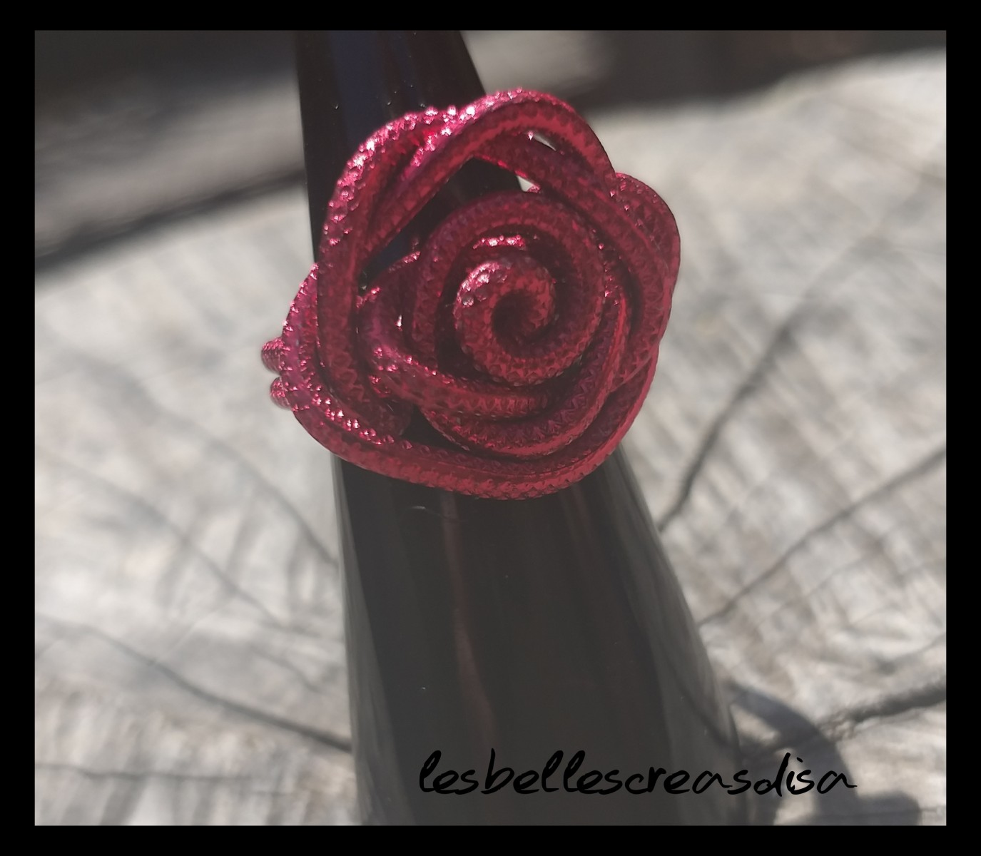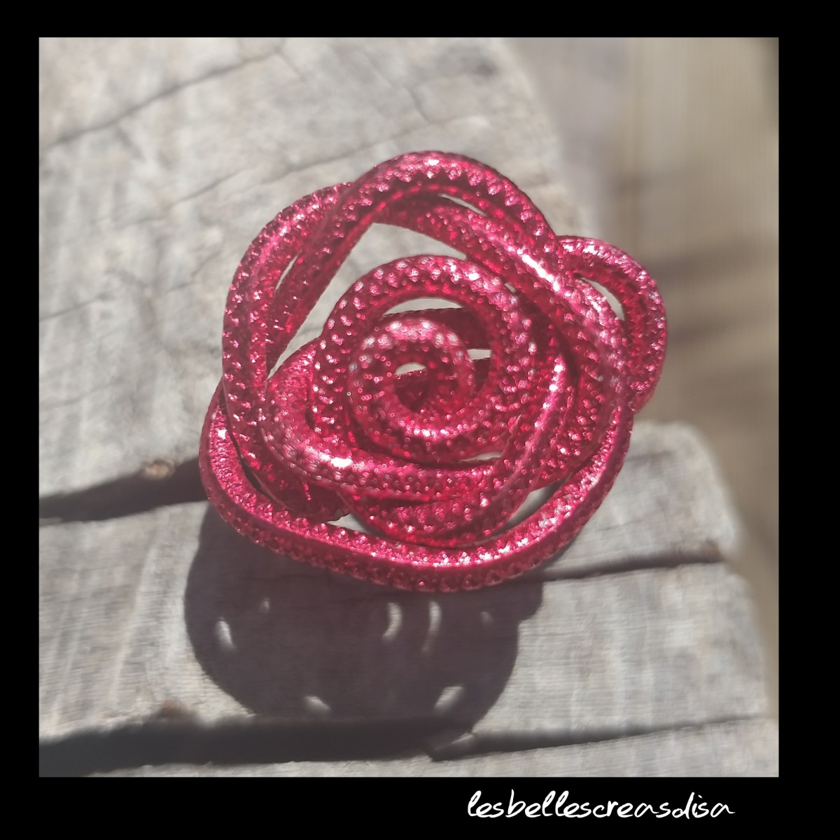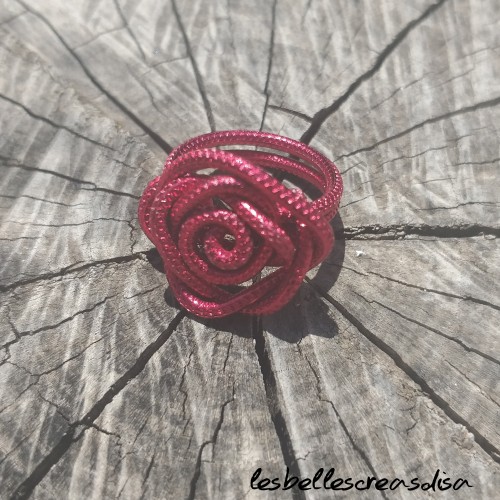 Bague rose rouge réalisée en fil d'aluminium ciselé,