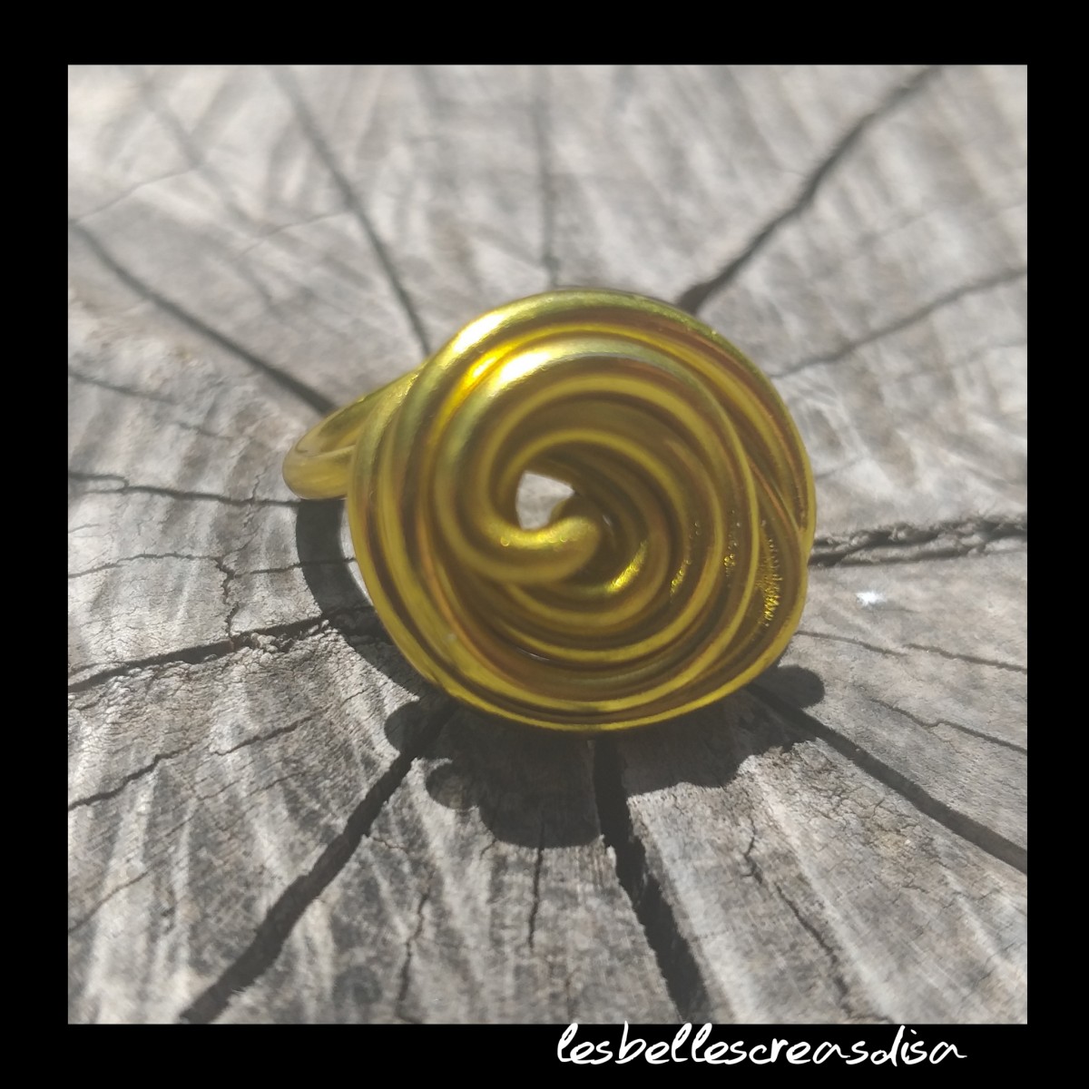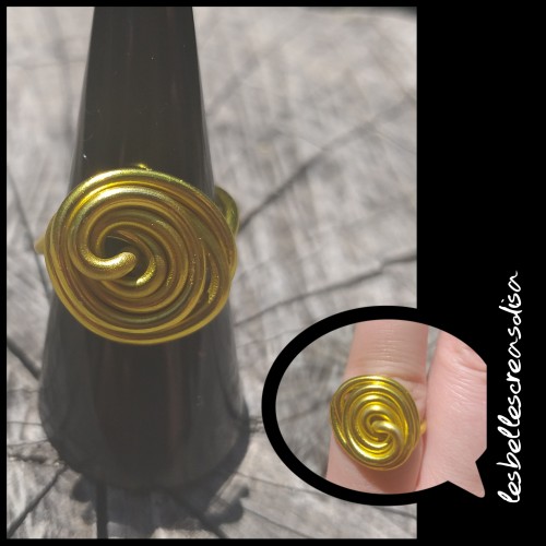 Bague en fil aluminium de couleur doré , spirale fait main