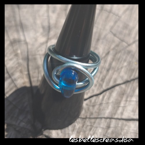 Jolie bague bleue polaire , réalisée à la main avec du fil d aluminium lisse et une jolie perle bleue transparente.