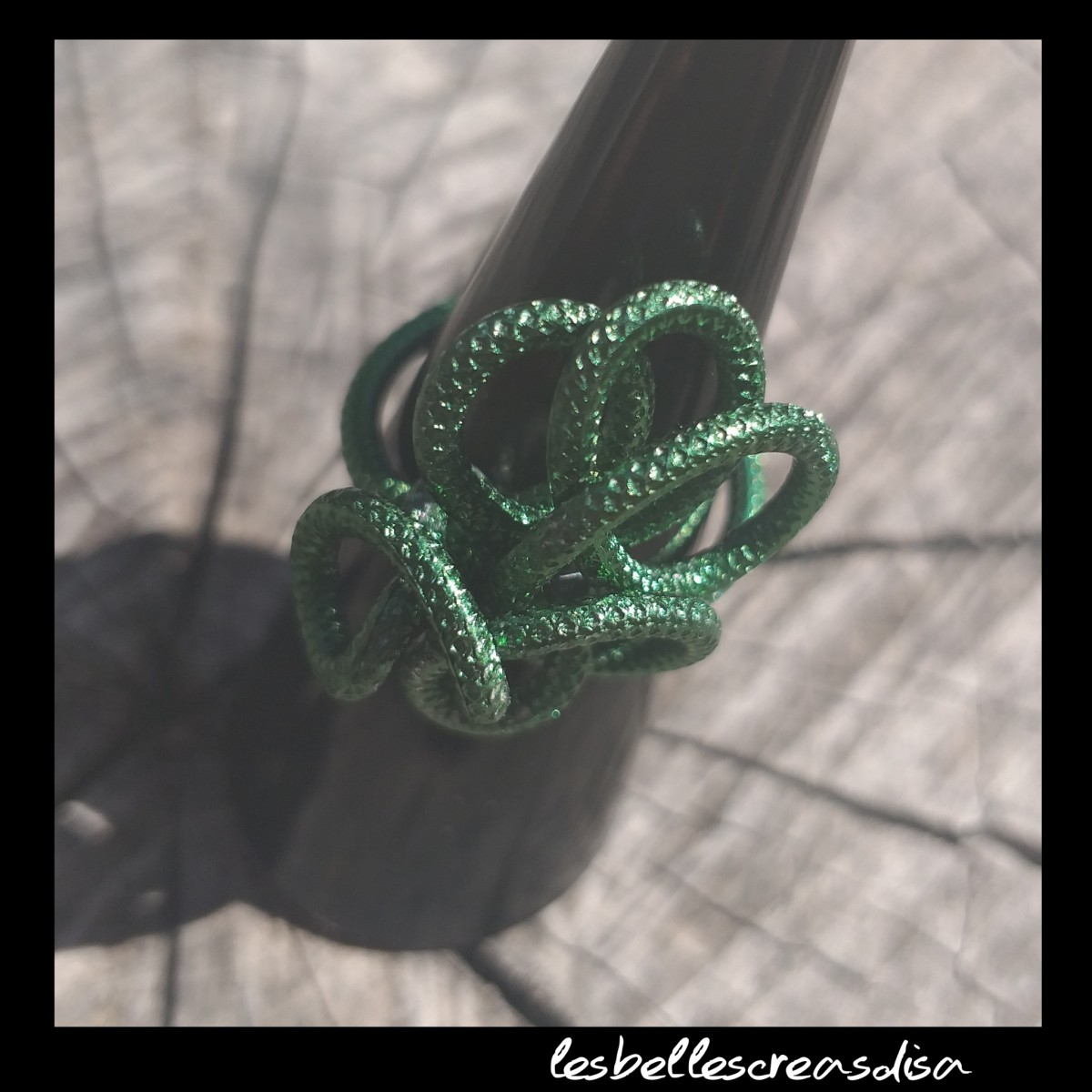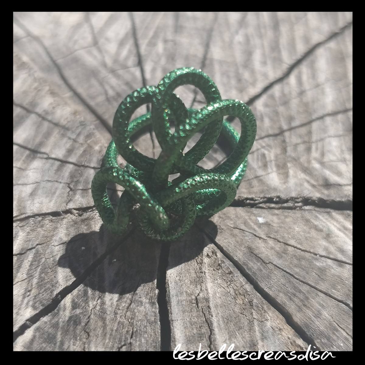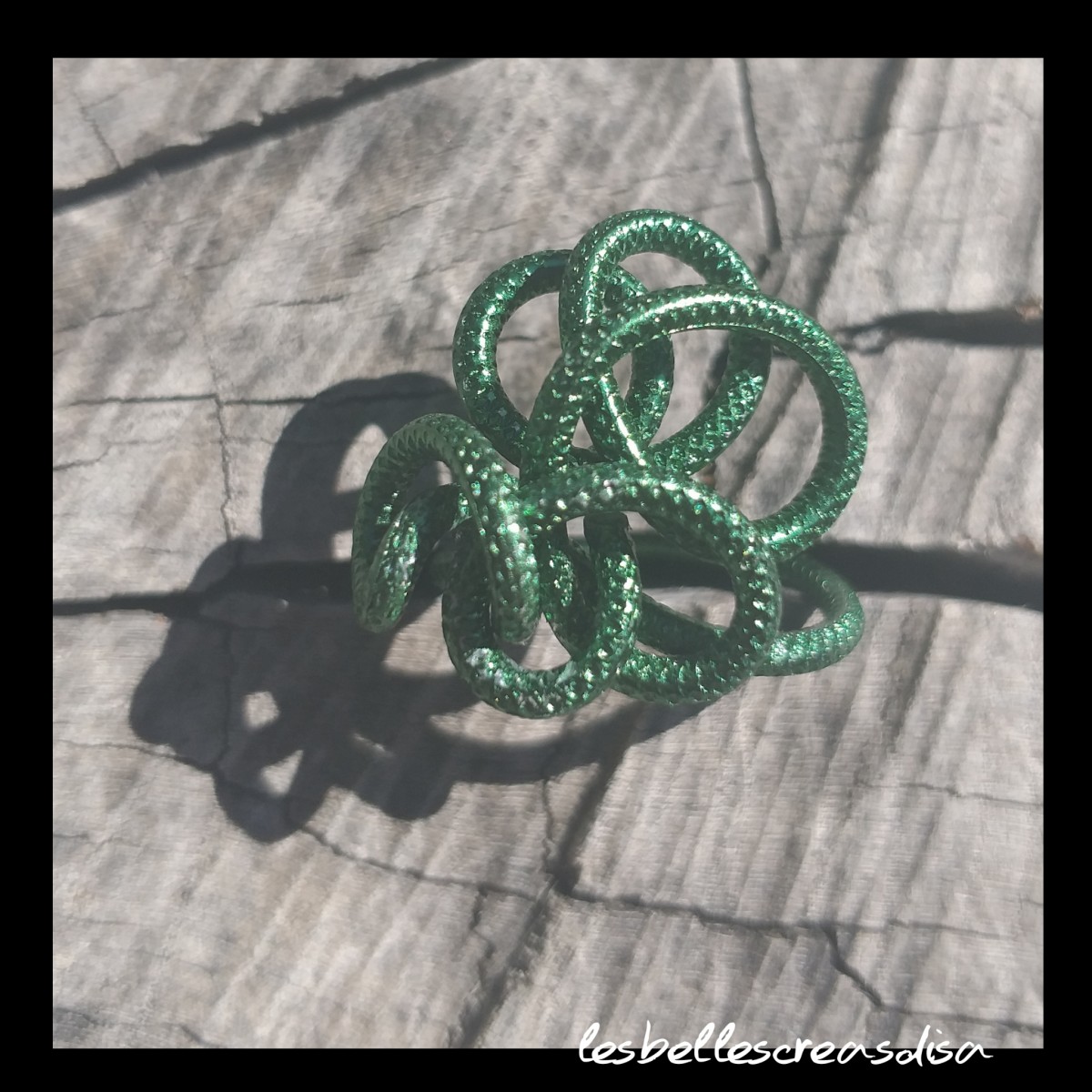 Bague gorgone en fil aluminium ciselé vert nature,