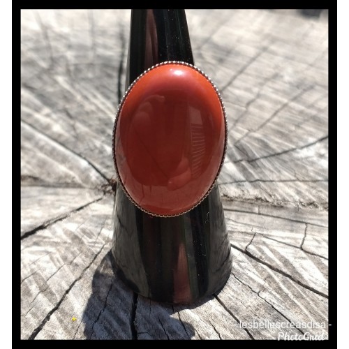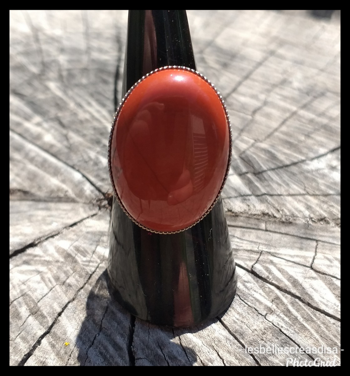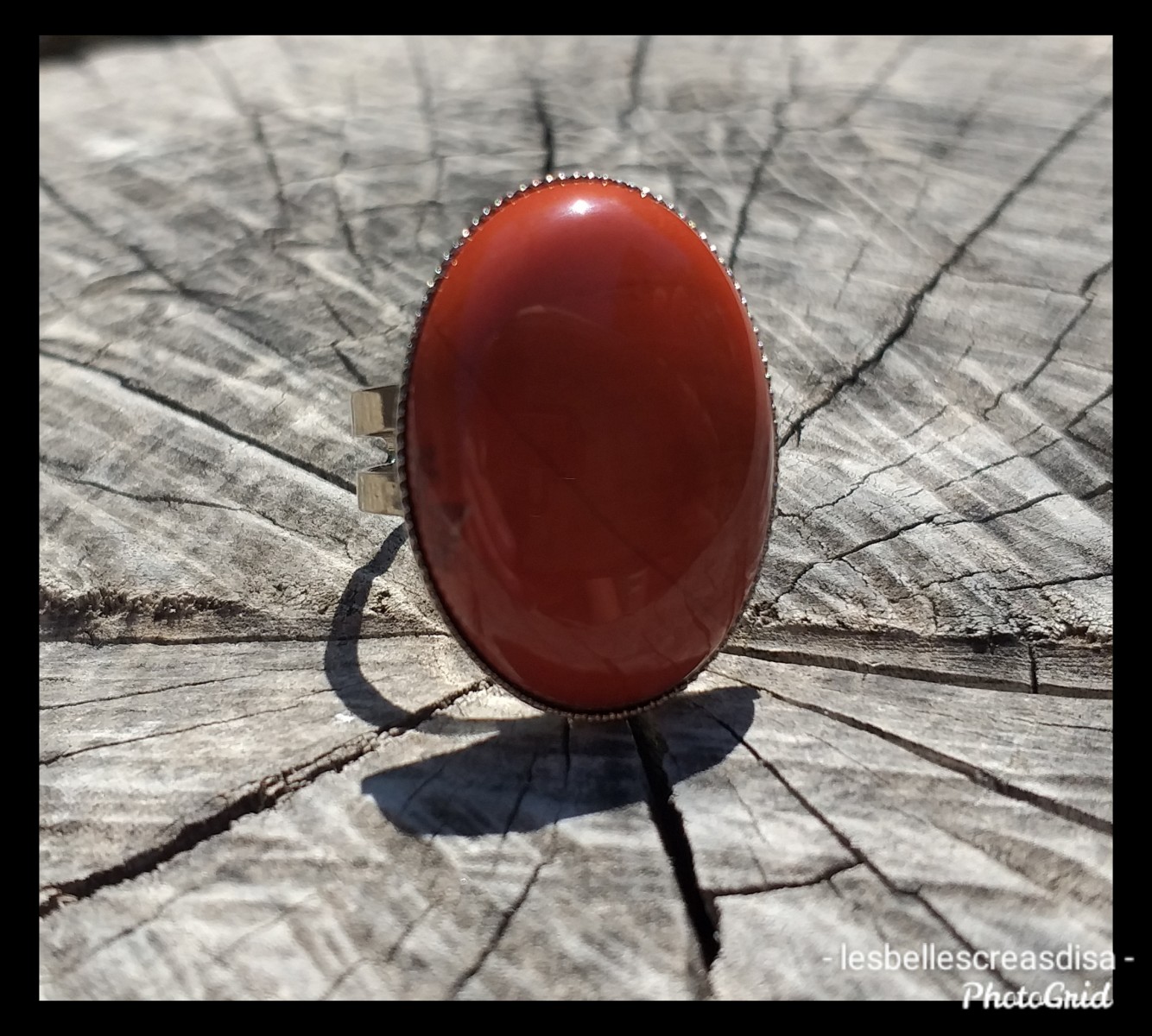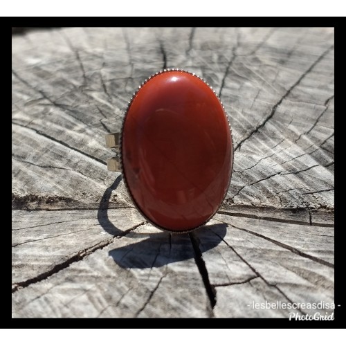 Bijoux en Jaspe rouge, bague de forme ovale réglable en acier inoxydable
