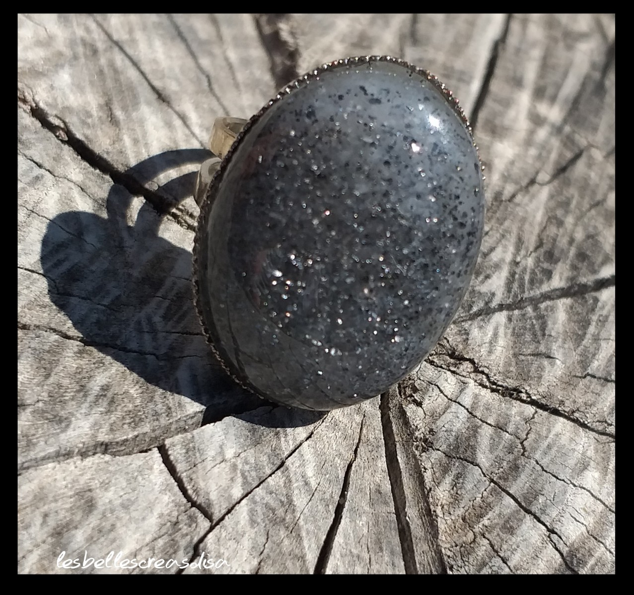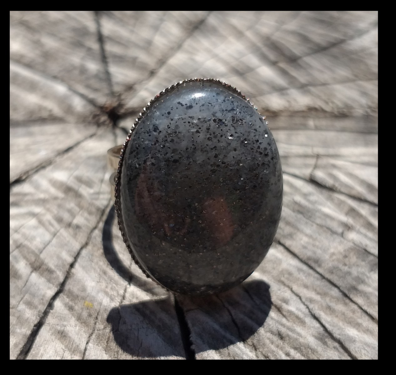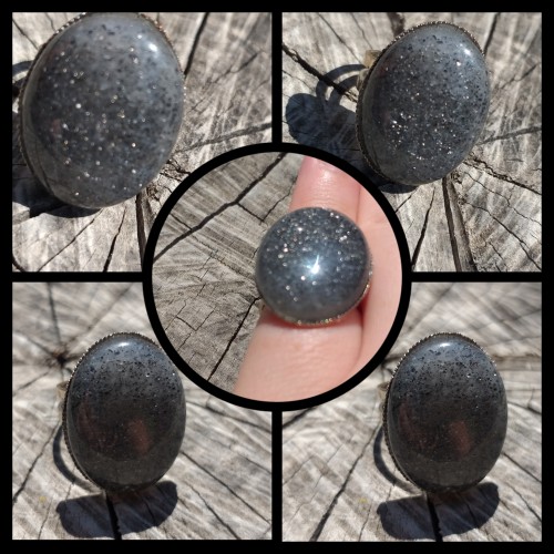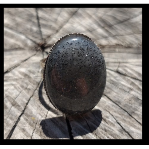 Bague réglable - Pierre de soleil noire - pierre brillante et pailletée