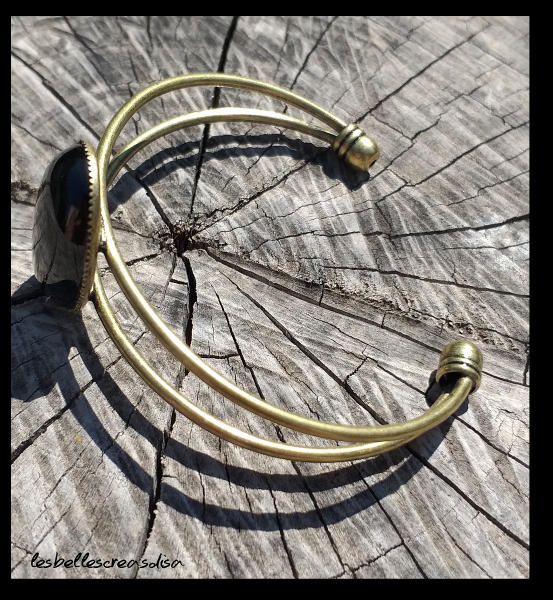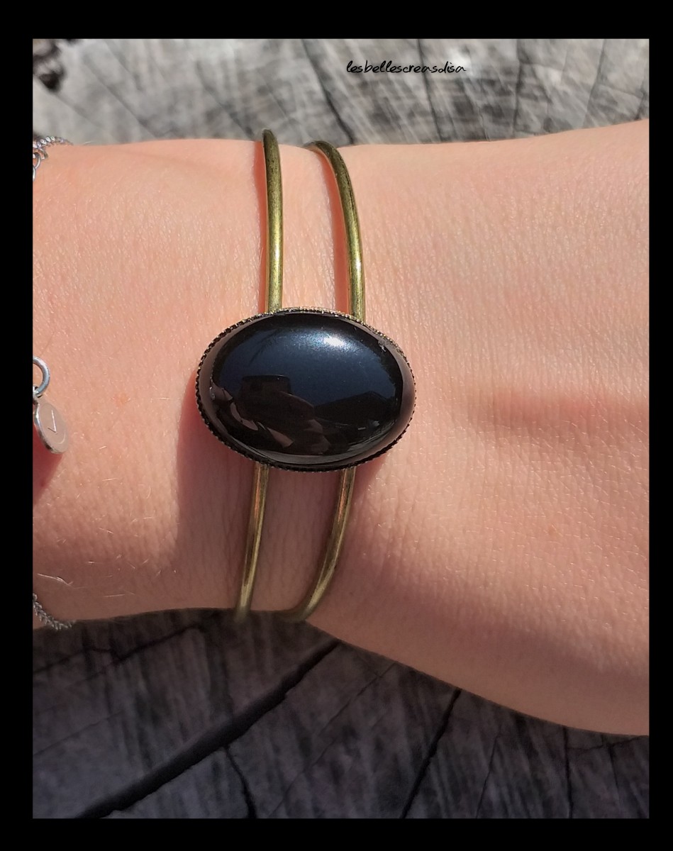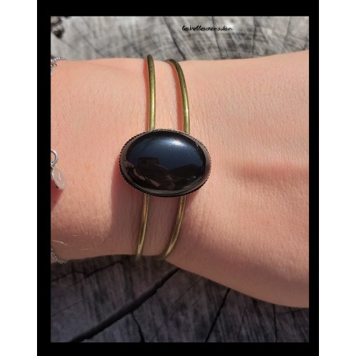 Bracelet jonc de couleur bronze et sa pierre naturelle d'obsidienne noire
