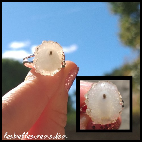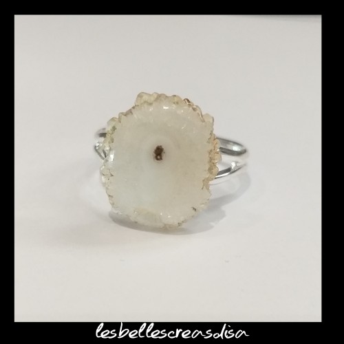 Bague quartz solaire composée d un cabochon en pierre naturelle blanche de dimension 11.6x14.3mm