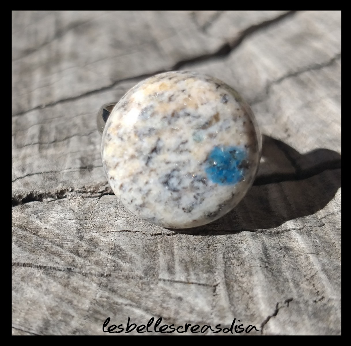 Cabochon rond de dimension 15.2mm sur support de bague réglable