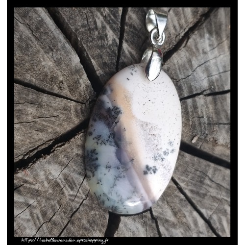 Superbe Opale dendritique 31x20x4mm énergie spirituelle - Pendentif Merlinite naturelle - pendentif cabochon ovale et cordon ciré noir - bijoux femme - pierre de relation à la nature et de purification - magnifique effet paysage