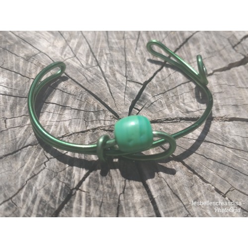 Bracelet aluminium vert et perle céramique verte, bijoux fait main, pièce unique, jonc en aluminium couleur verte , bracelet femme
