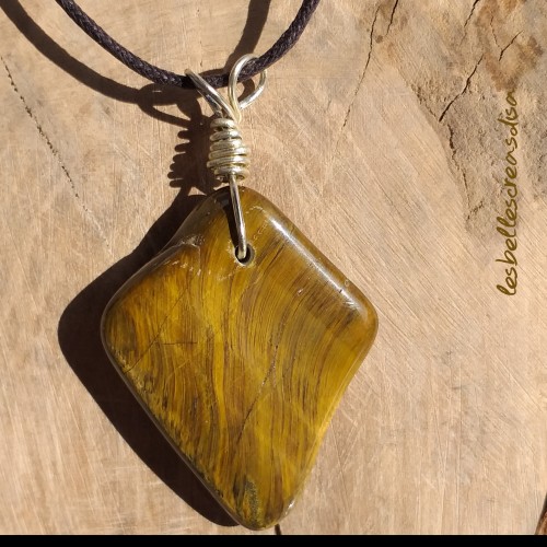 OEIL DE TIGRE COLLIER LOSANGE - PIECE UNIQUE - Collier oeil de tigre - pierre naturelle forme libre - entièrement réalisé à la main - bélière wire wrapping - collier unique - losange