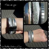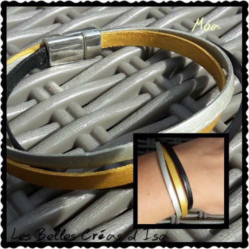 Bracelet Cuir Souple - Buffle - Noir, Or et Argent - modèle NOA