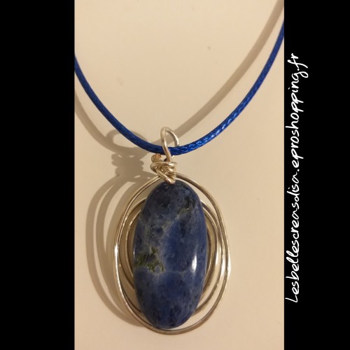 SODALITE - CABOCHONE OVALE - COLLIER FAIT MAIN - PIECE UNIQUE - PIERRE NATURELLE - Collier cabochon sodalite ovale sur pendentif fait main