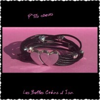 Bracelet cuir noir - multi liens "Coeur"