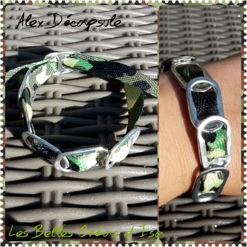 Bracelet Motif Armée Vert Kaki en Tissus et Capsules de Canettes - Modèle Alex Décapsule - Collection 100% Récup d'Alex