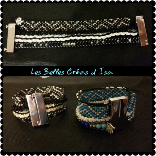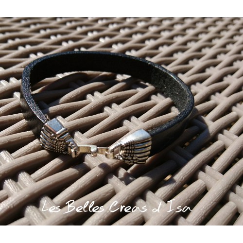 Bracelet cuir noir fermoir clip