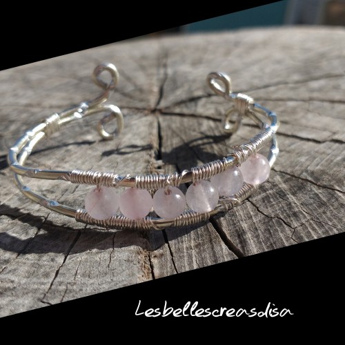 Bracelet quartz rose et fil d aluminium entièrement réalisé à la main