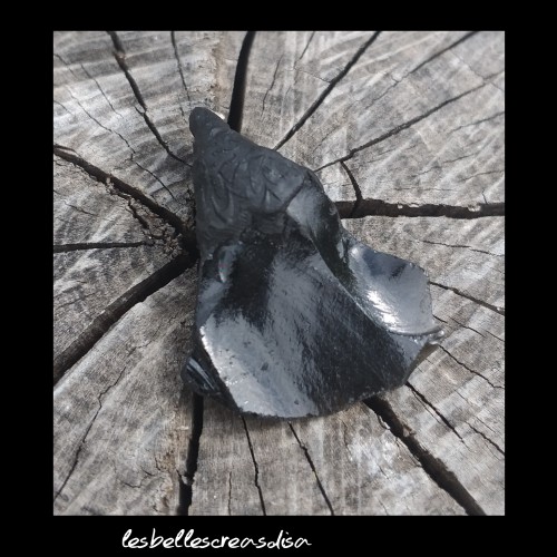 CHAPEAU DE LUTIN OBSIDIENNE - FLEUR - COLLIER PIECE UNIQUE - REALISATION MAIN - BIJOUX CREATEUR - MADE IN FRANCE Collier avec Pendentif obsidienne brute taillée à la main, talisman de protection pièce unique, pâte autodurcissante spécial bijoux noire , p