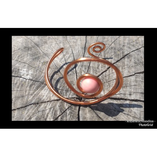 Bracelet en fil d aluminium de couleur cuivre , perle céramique rose , bracelet femme jonc cuivre , bijoux fait main , fil enroulé, pièce unique , création artisanale