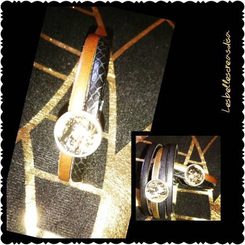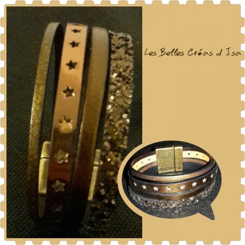 Bracelet en cuir bronze et marron à paillettes